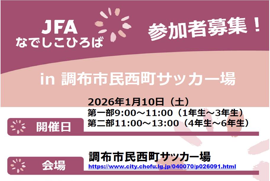 ■2025/12/11 JFAなでしこひろば 参加者募集 JFAなでしこひろば in 調布市民西町サッカー場